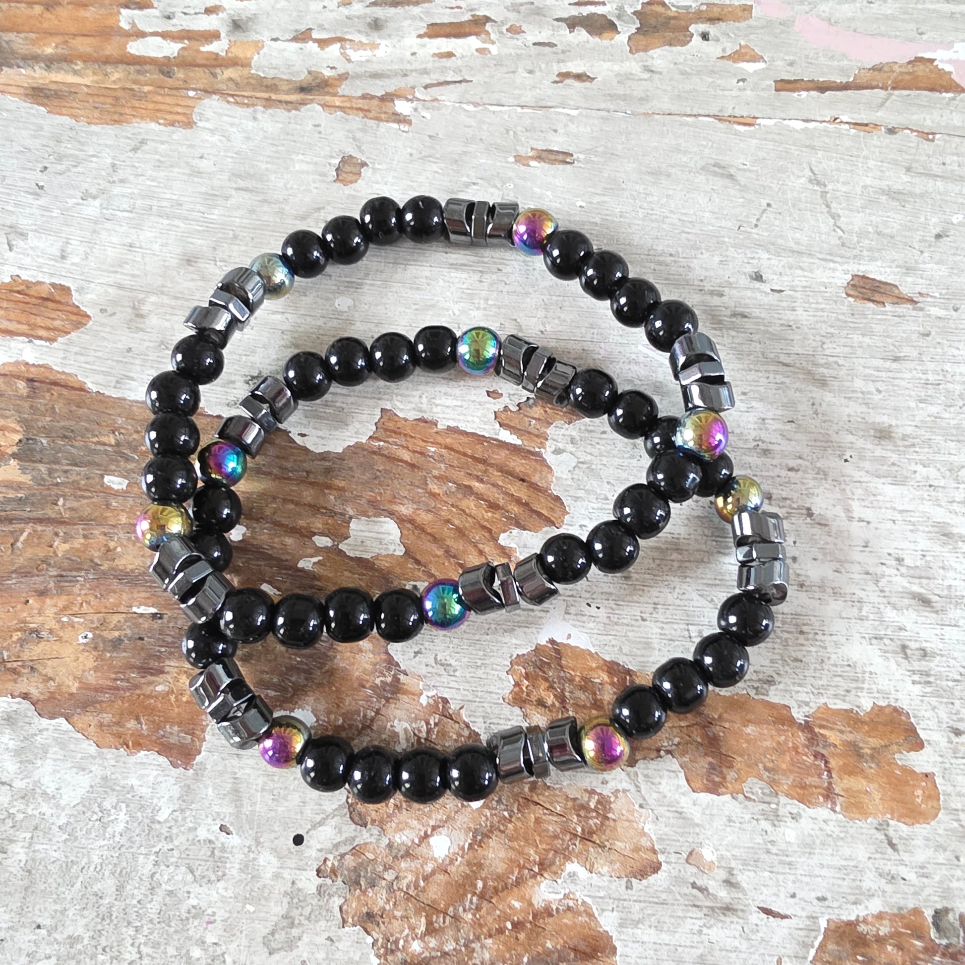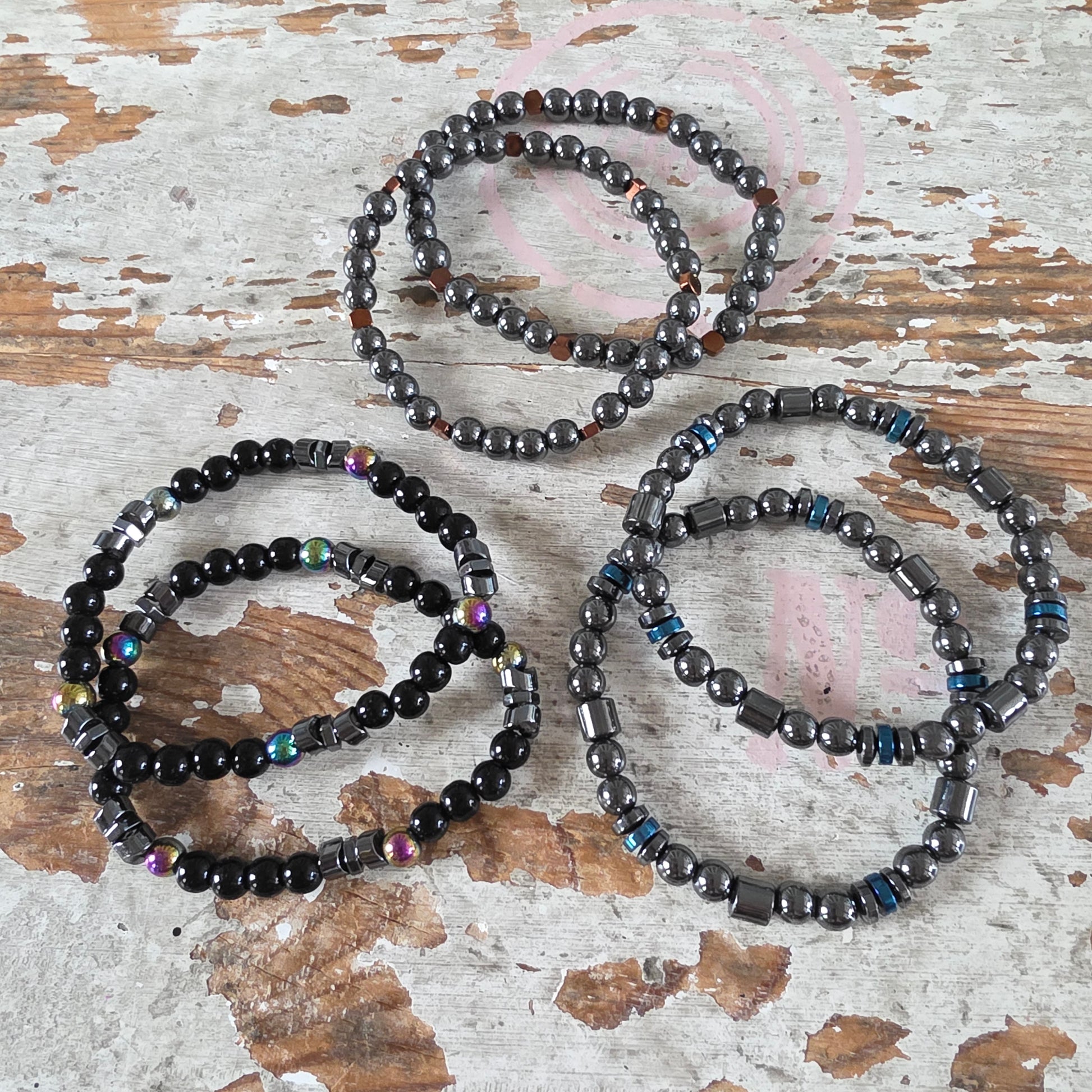 One size. Hematiitti, aurahematiitti ja obsidiaani.