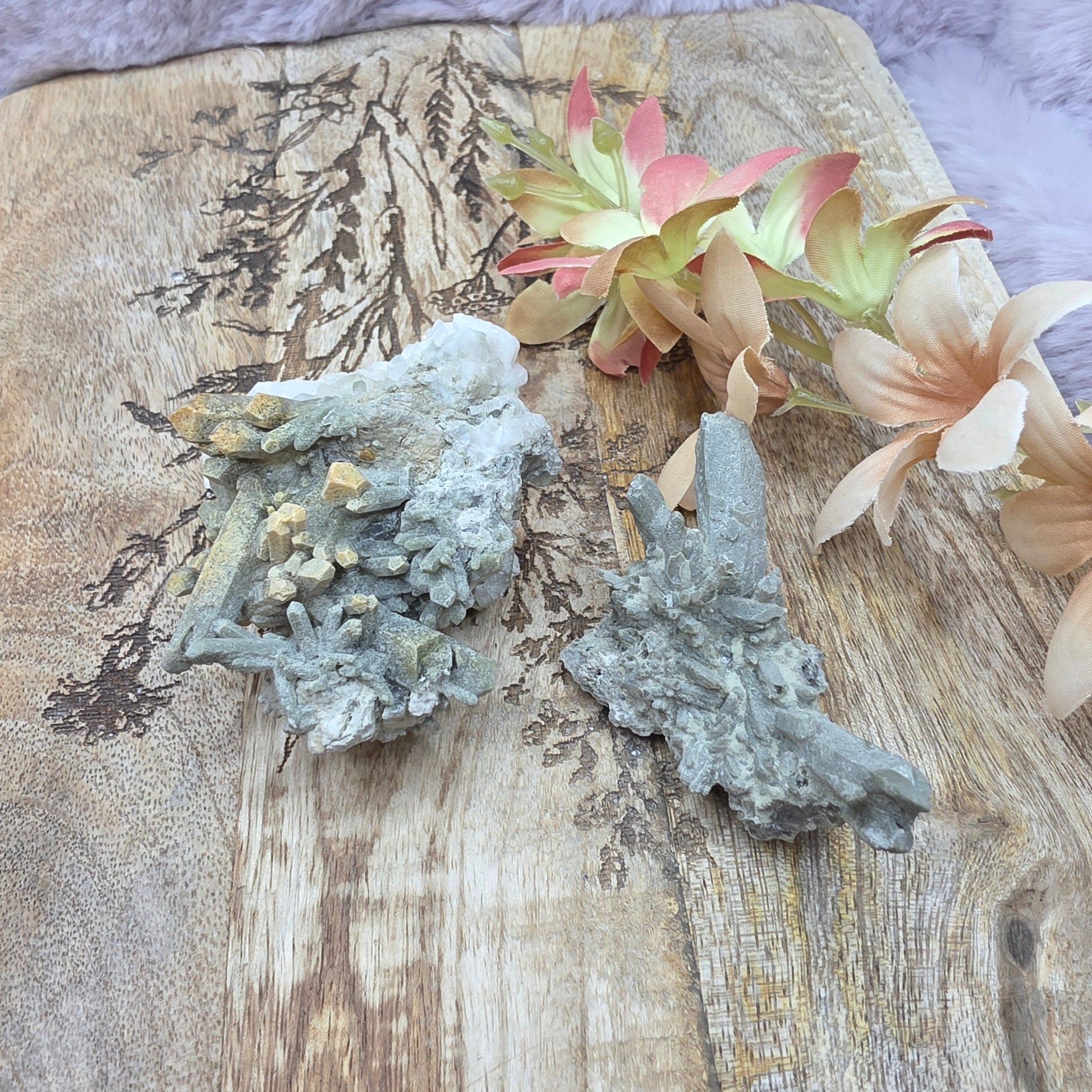 Kloori-mineraalia ja kvartsia.