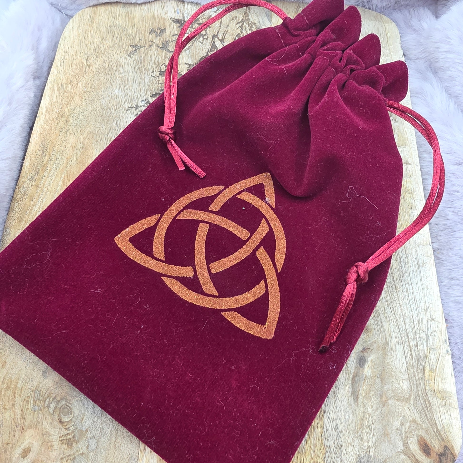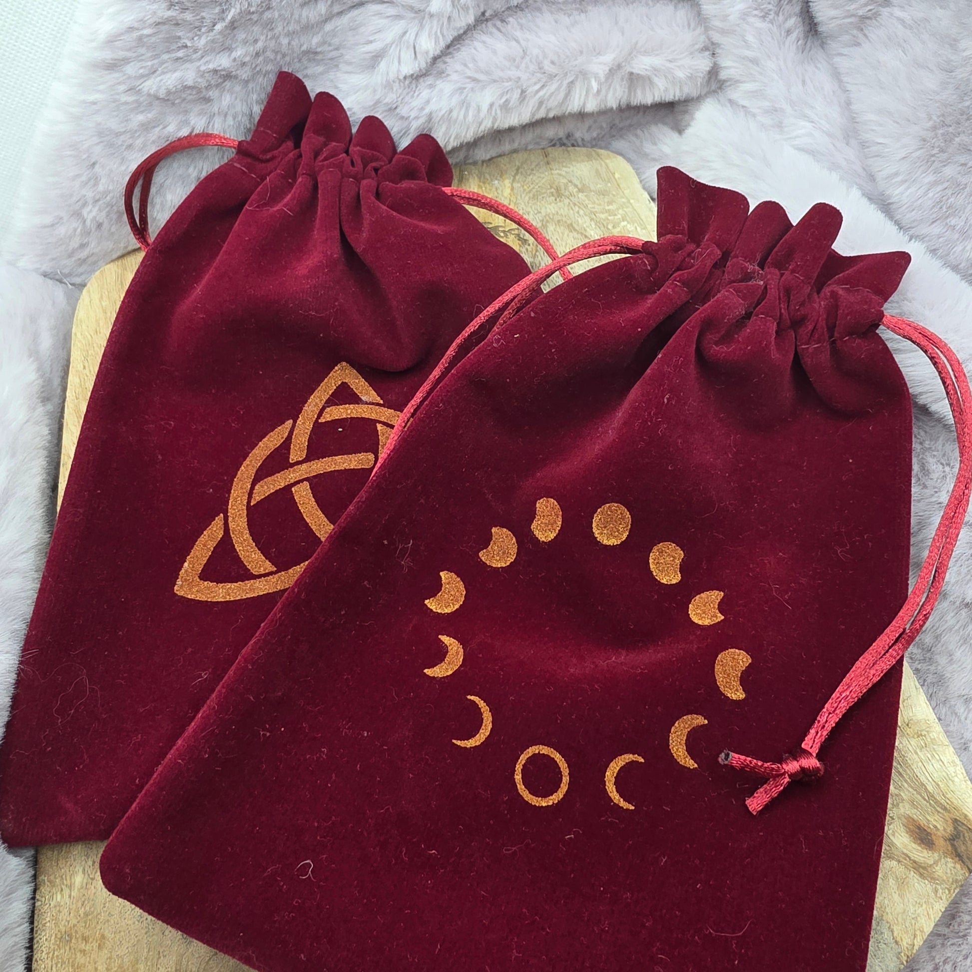 Mitat on n.13.5x21.5cm. Punaista sanettityylistä kangasta ja kiristettävät narut