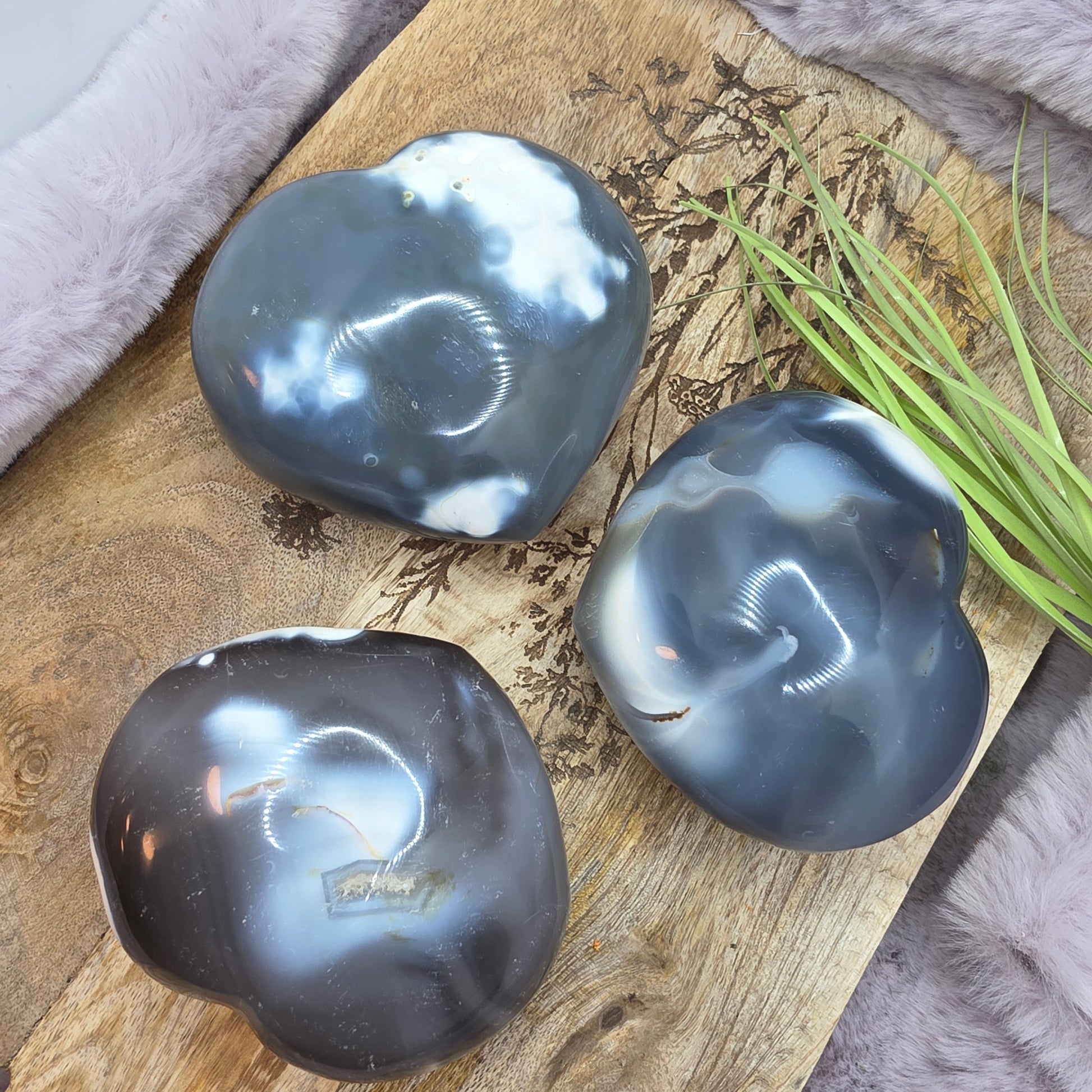Kiven paino on n.310-380g ja läpimitta on n.8.5cm. 2lk.pinnassa pieniä hiontajälkiä