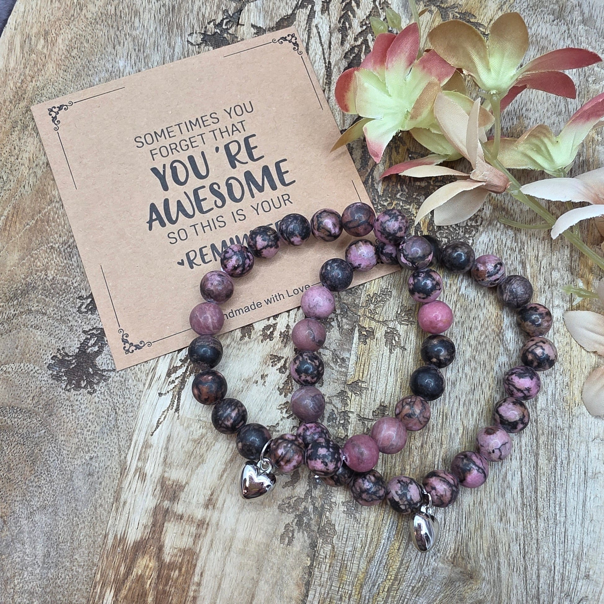 One size. Rodoniittia ja muovisydän. Mukaan tulee kartonkilappu.