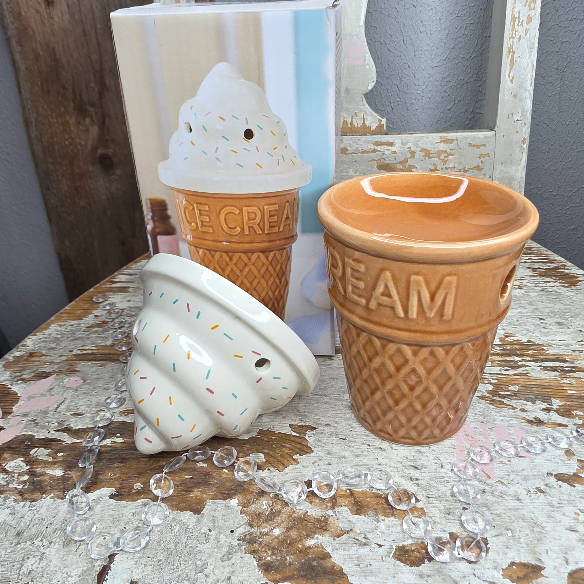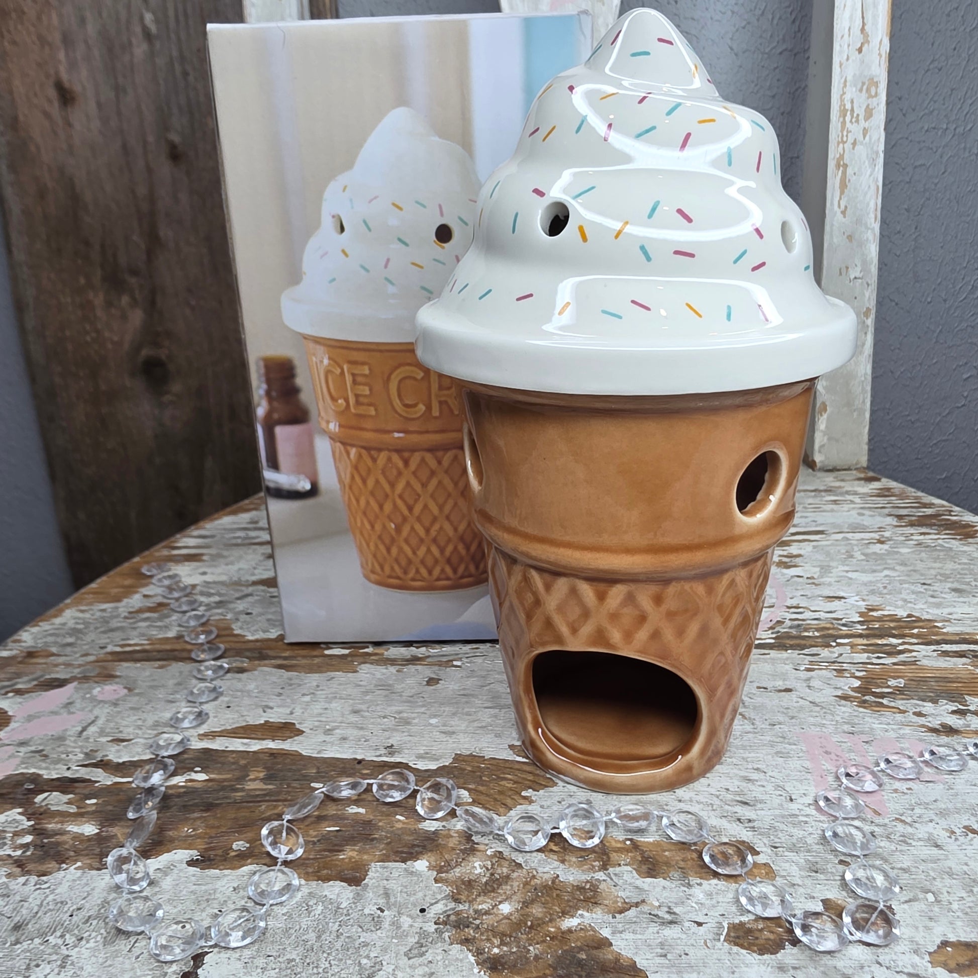 Keraamisen lyhdyn mitat on n.17x9.5x9.5cm. Takana on aukko tuikulle. Käytä tuoksylyhtyä aina valvonnan alla!
