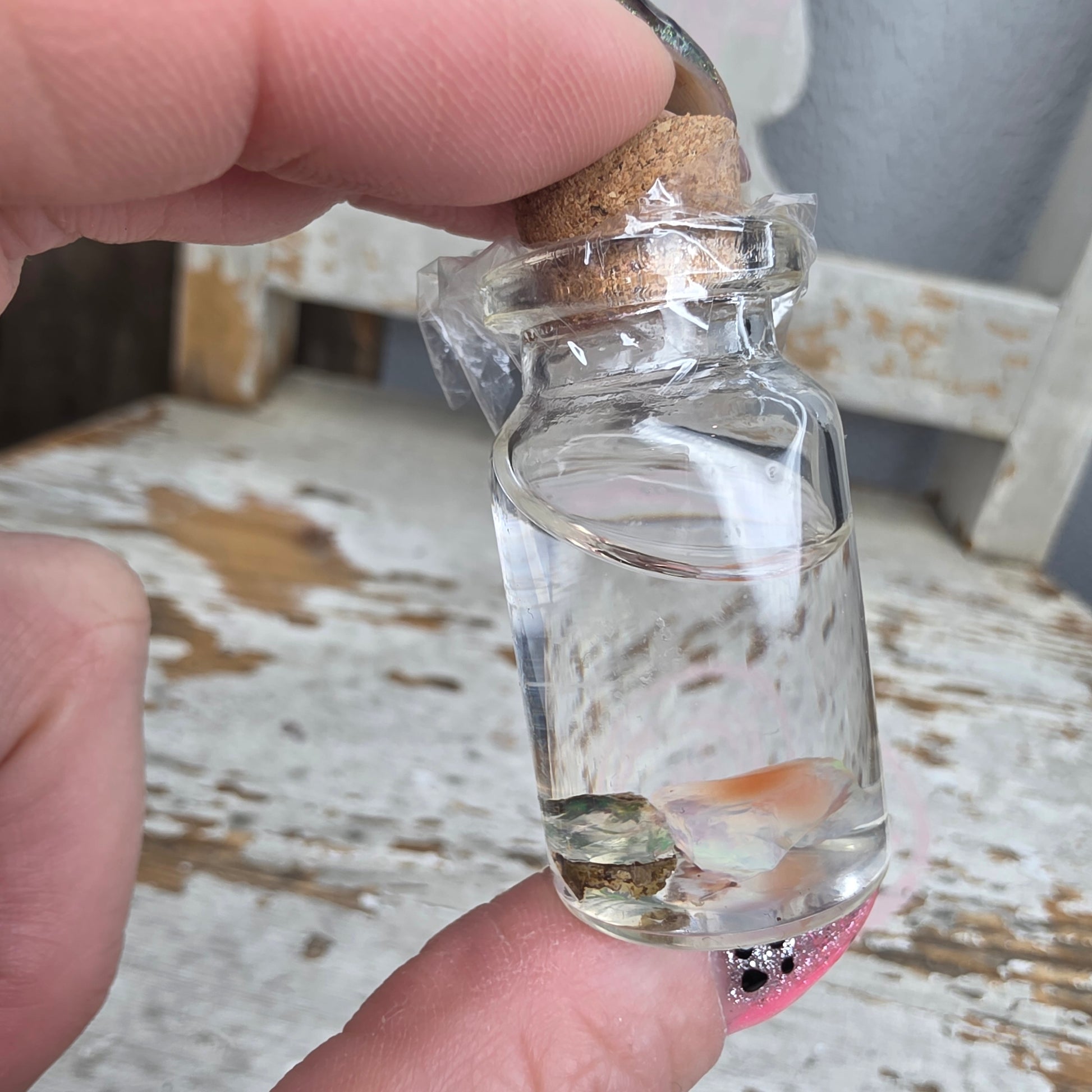 Kivien läpimitta on n.1cm. Lasipurkin korkeus on n. 4.5cm. Vesiopaali on pidettävänä aina kosteana!